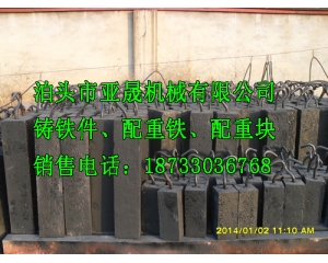 描述:配重鐵 配重鐵是用于增加自身重量來保持平衡的重物,是將噴丸機熔煉成符合一定要求的液體并澆進鑄型里,經冷卻凝固、清整處理后得到有預定形狀、尺寸和性能的鑄件的工藝過程。...